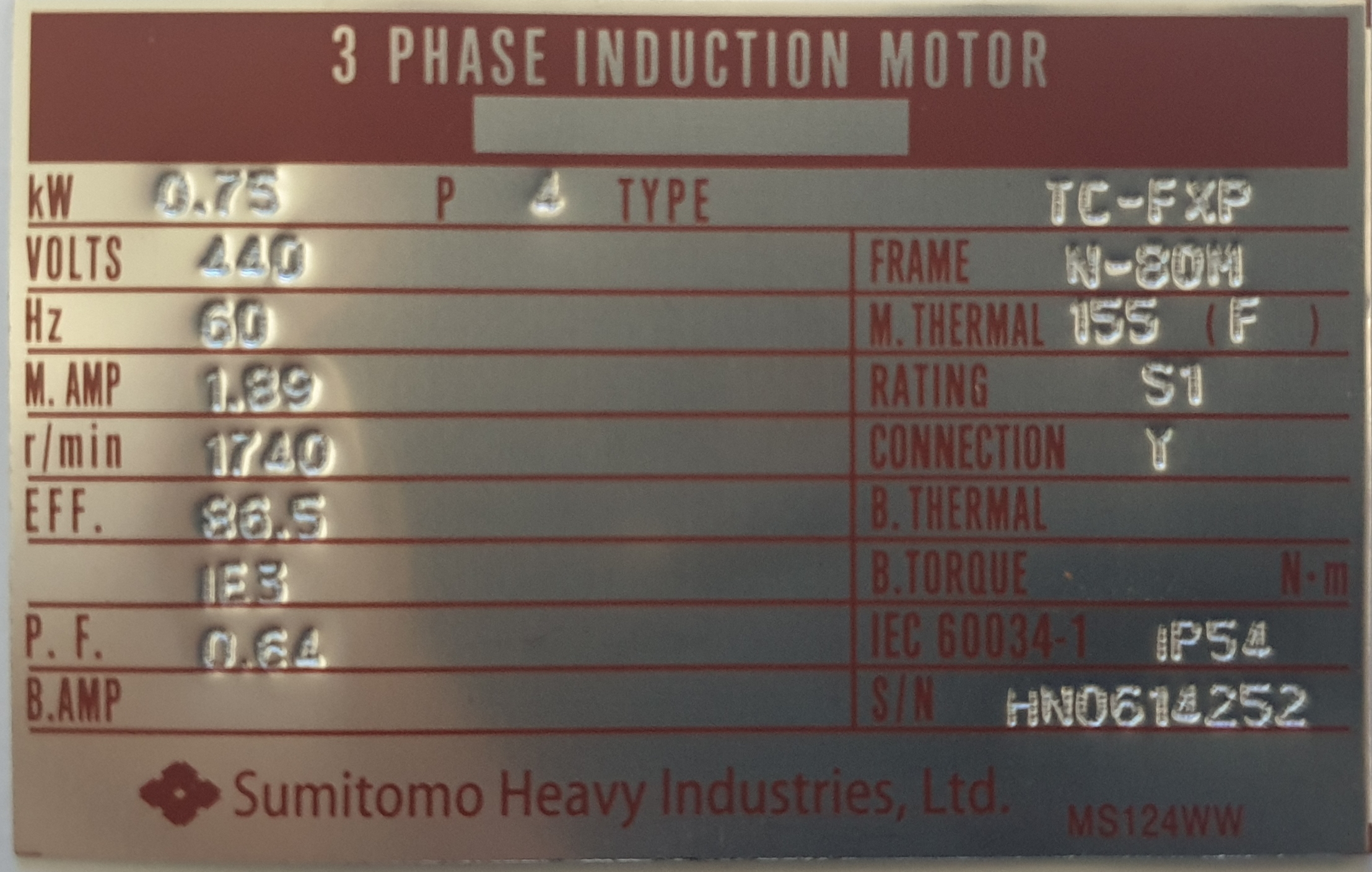 | 정격출력(㎾) | 0.75 | 평균전부하효율(%) | 86 |