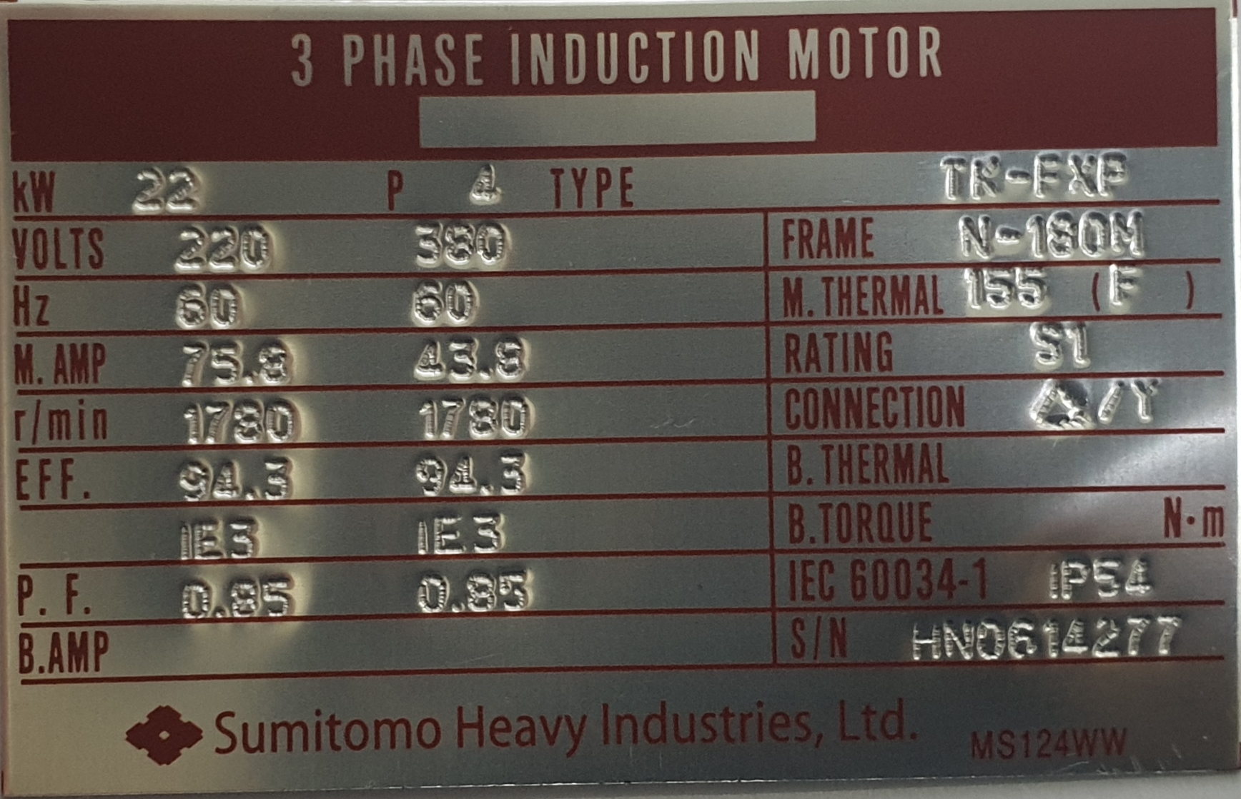 | 모델명 | TK-FXP 22KW 4P IE3 KS F220/380V | |