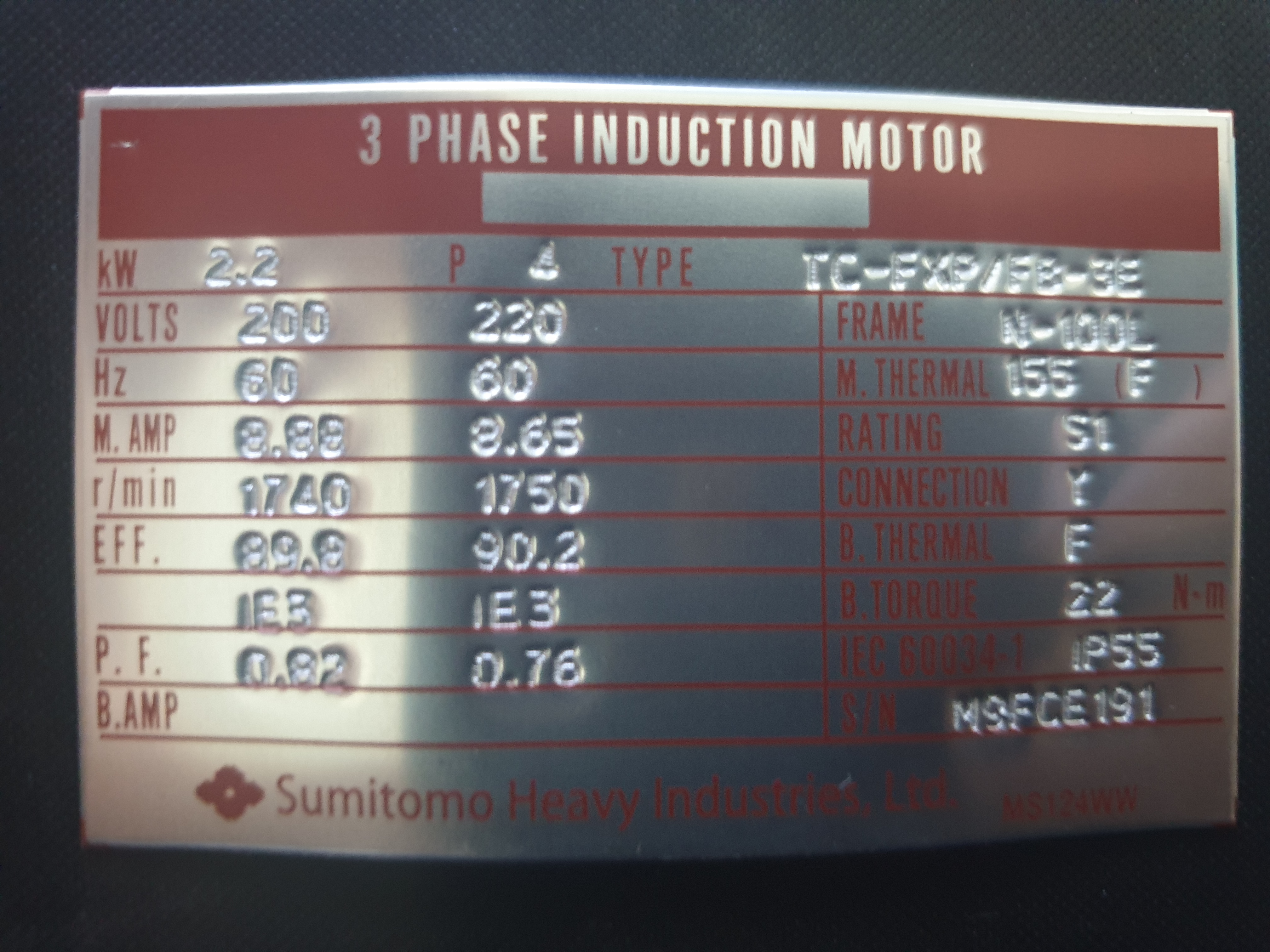 | 모델명 | TC-FXP/FB-3E 2.2KW 4P IE3 KS F200/220V | |