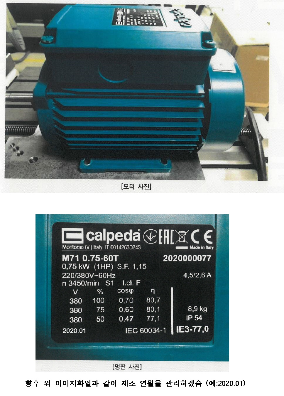 | 정격출력(㎾) | 0.75 | 평균전부하효율(%) | 82 |