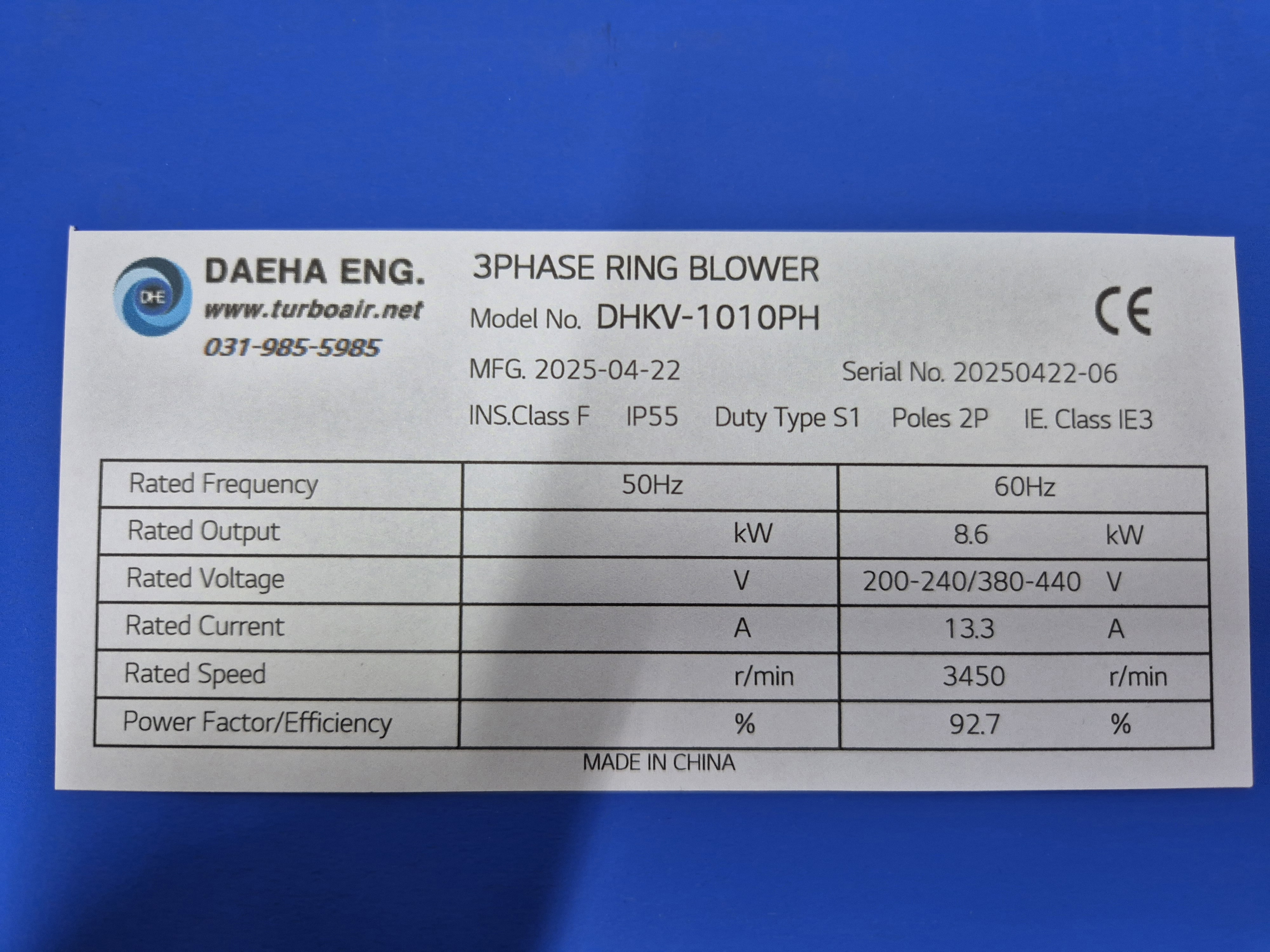 최저소비효율기준(IE3) 만족