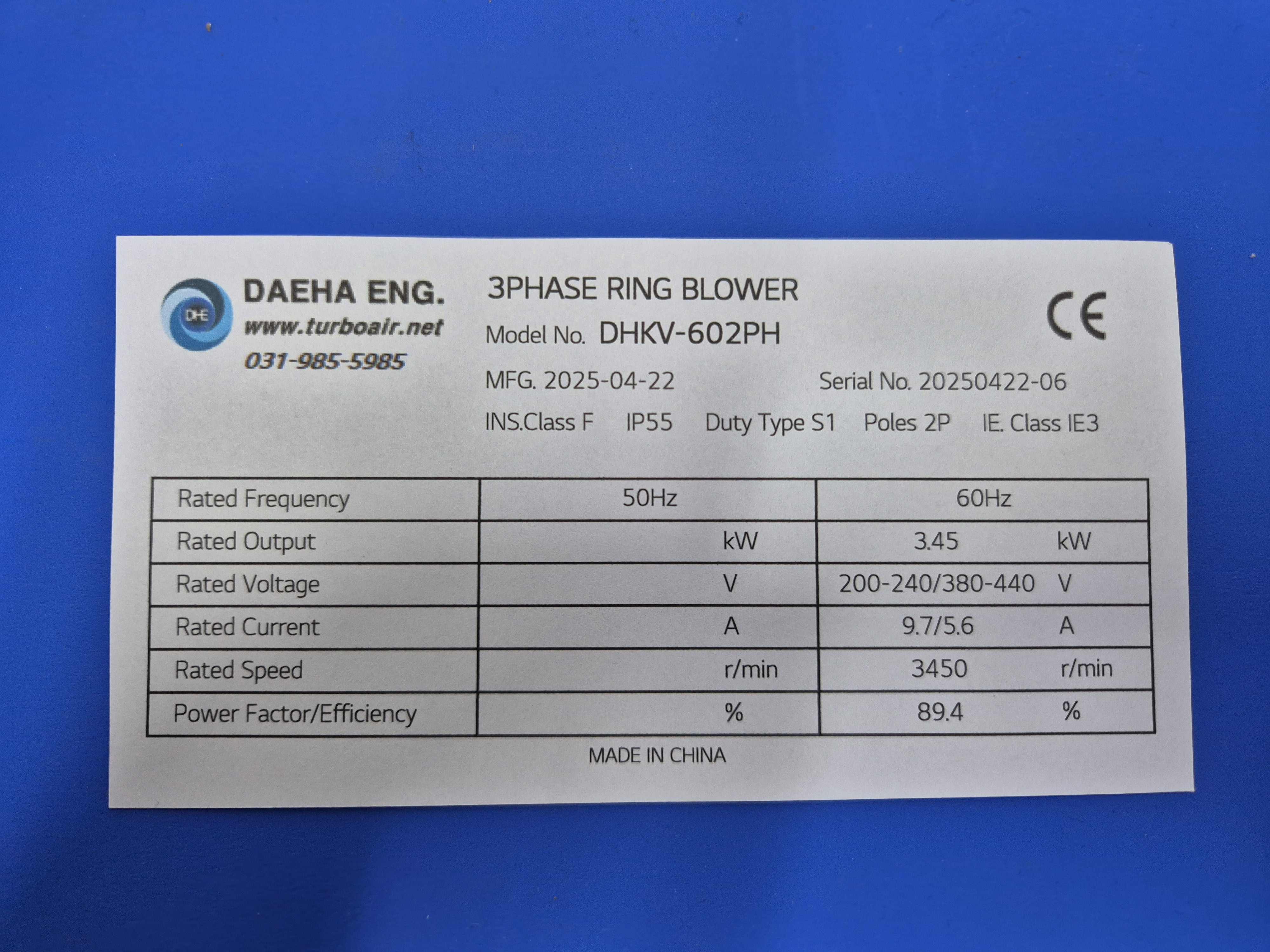 최저소비효율기준(IE3) 만족
