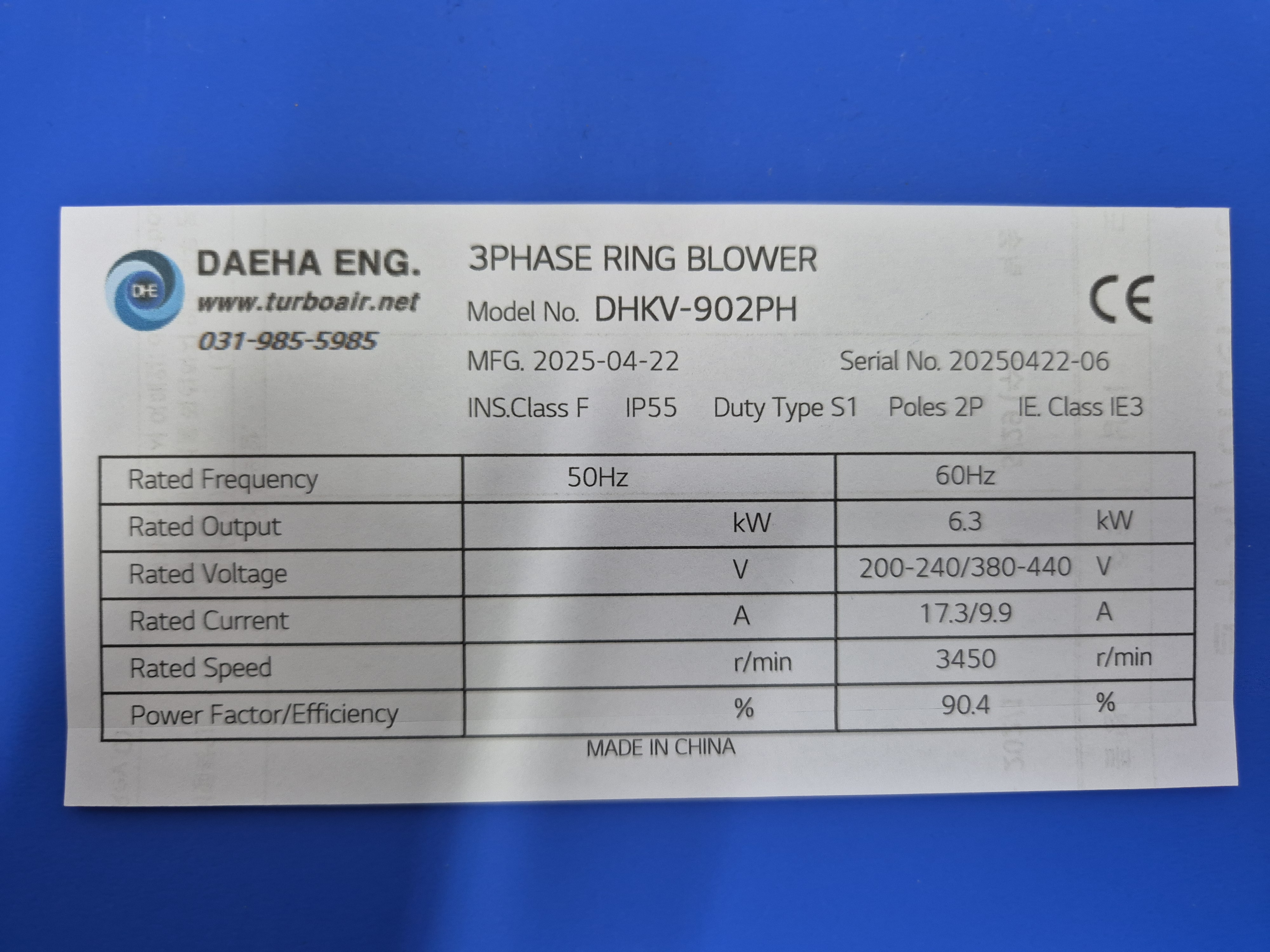 최저소비효율기준(IE3) 만족