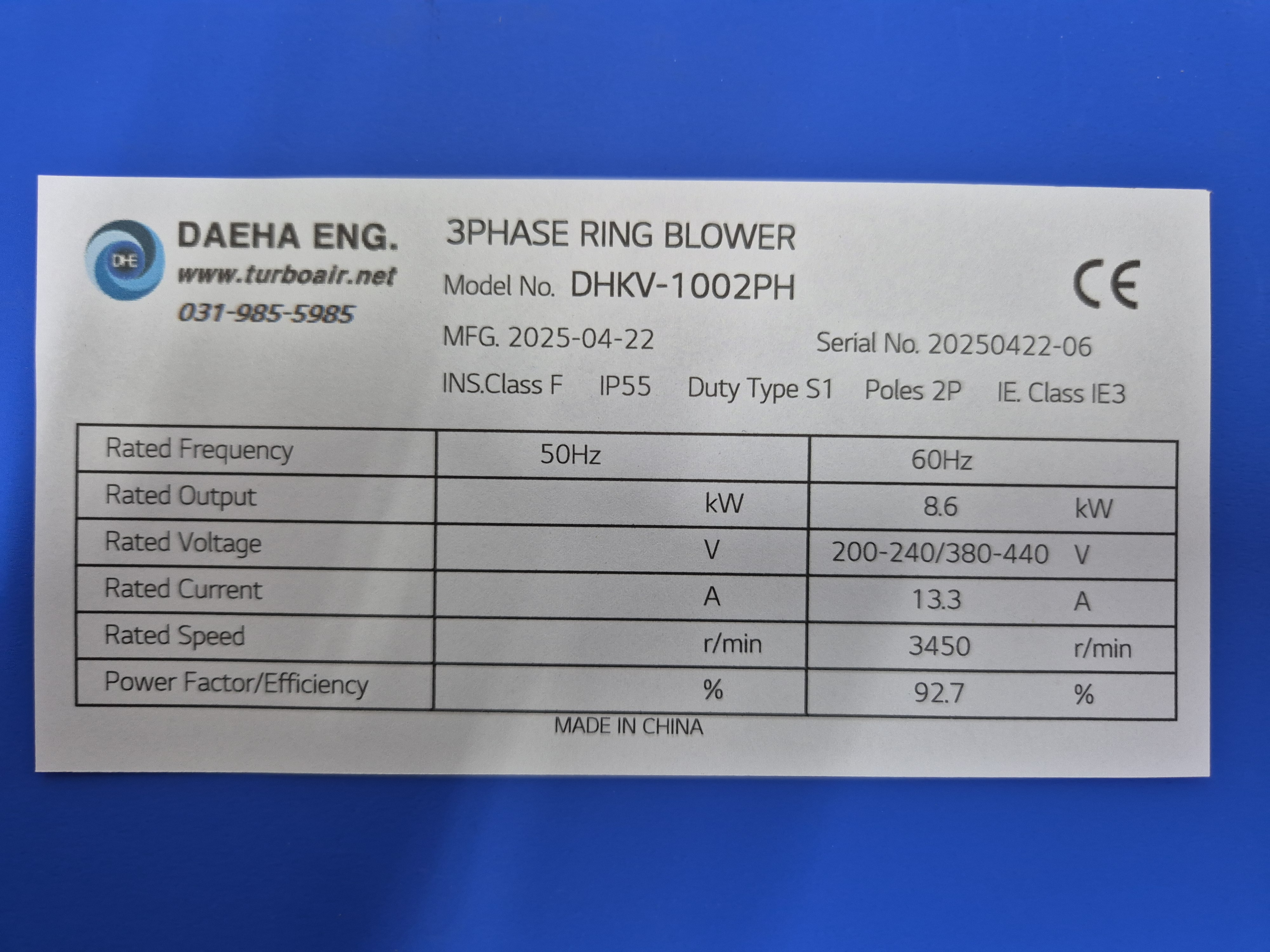 최저소비효율기준(IE3) 만족