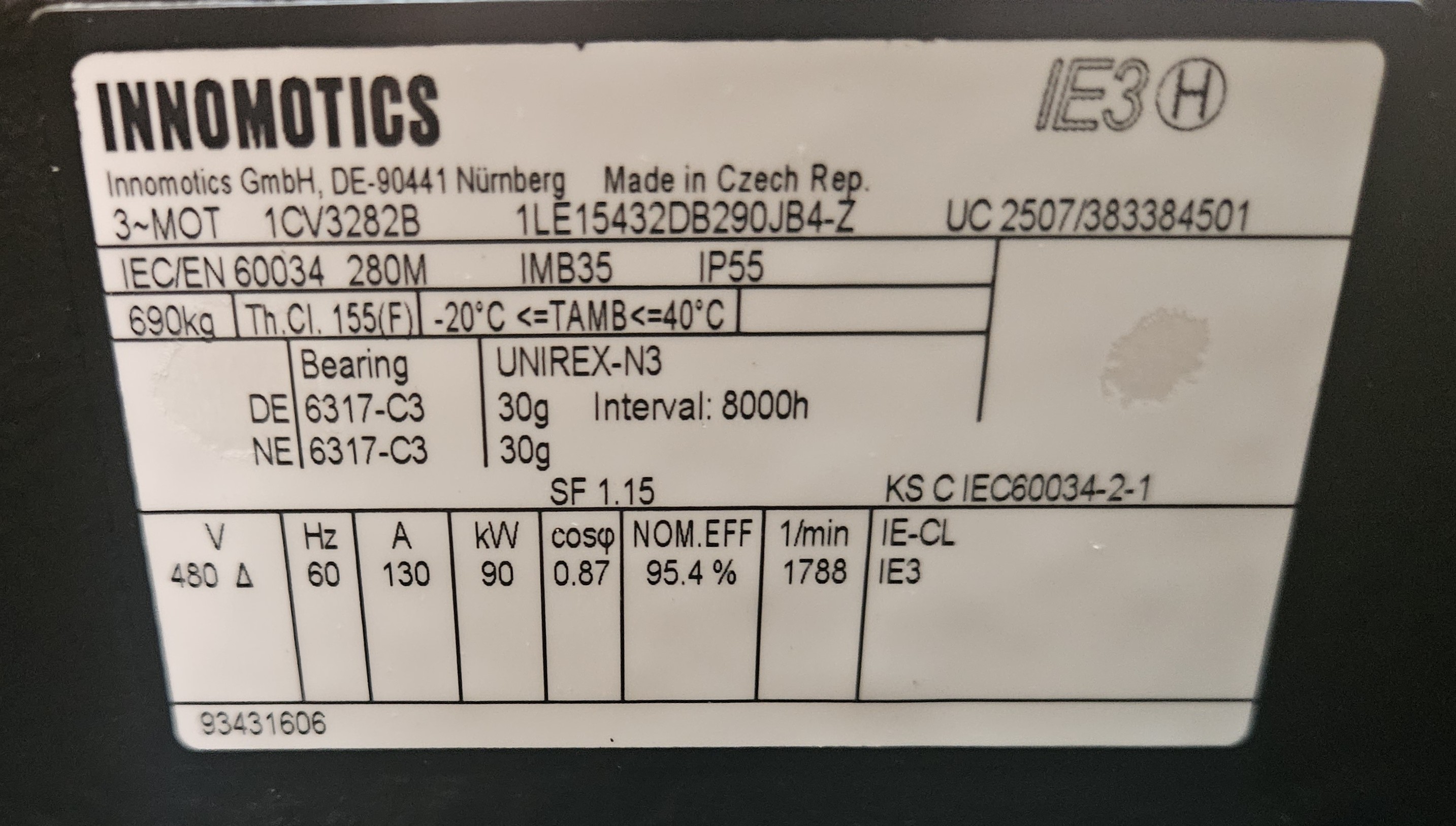 | 정격출력(㎾) | 90 | 평균전부하효율(%) | 95.5 |